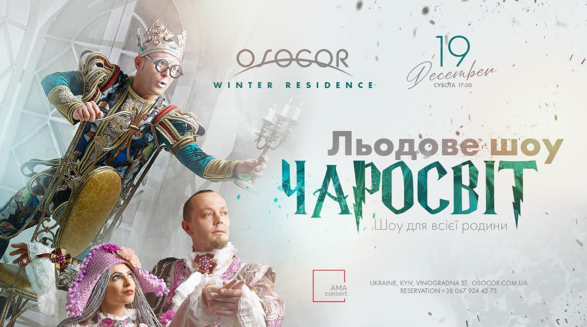 Команда Osocor Residence и AMAconcert продолжает дарить киевлянам и гостям столицы сказку и зрелища. Вслед за хеллоуинской постановкой «Лебединое озеро. Правдивая история» и воспроизведением зимнего городка Хогсмид из потеррианы они представляют театрализованное ледовое шоу для всей семьи «ЧАРОСВИТ».
