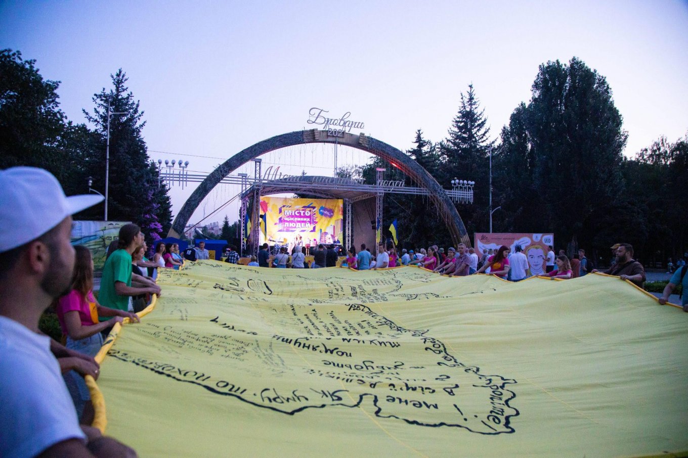 А на фінал концерту всі присутні розгорнули на площі гігантське полотно з обрисами України та цитатами Шевченка, яке створювалося спільними зусиллями учасників Ше.Fest'у в 2018 році.