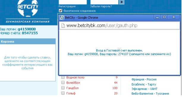 После проверки, гость автоматически получает персональные данные - пароль и логин, которые потребуются для последующего входа на сайт букмекерской конторы.