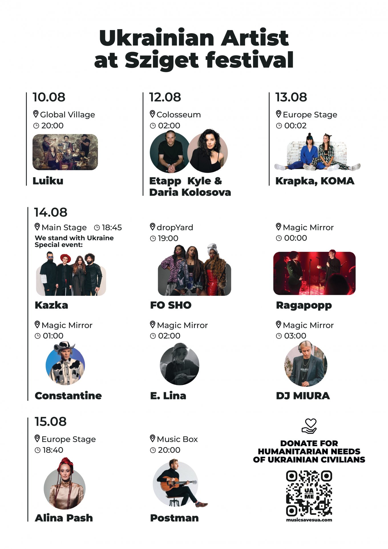 На фестивалі Sziget встановили стенд з українськими артистами, які не змогли взяти участь, бо боронять Україну від російських окупантів у лавах ЗСУ. Серед них — фронтмен гурту «Бумбокс» Андрій Хливнюк, весь колектив групи «Антитіла», співак Коля Серга, хіп-хоп виконавець Yamak та інші.
