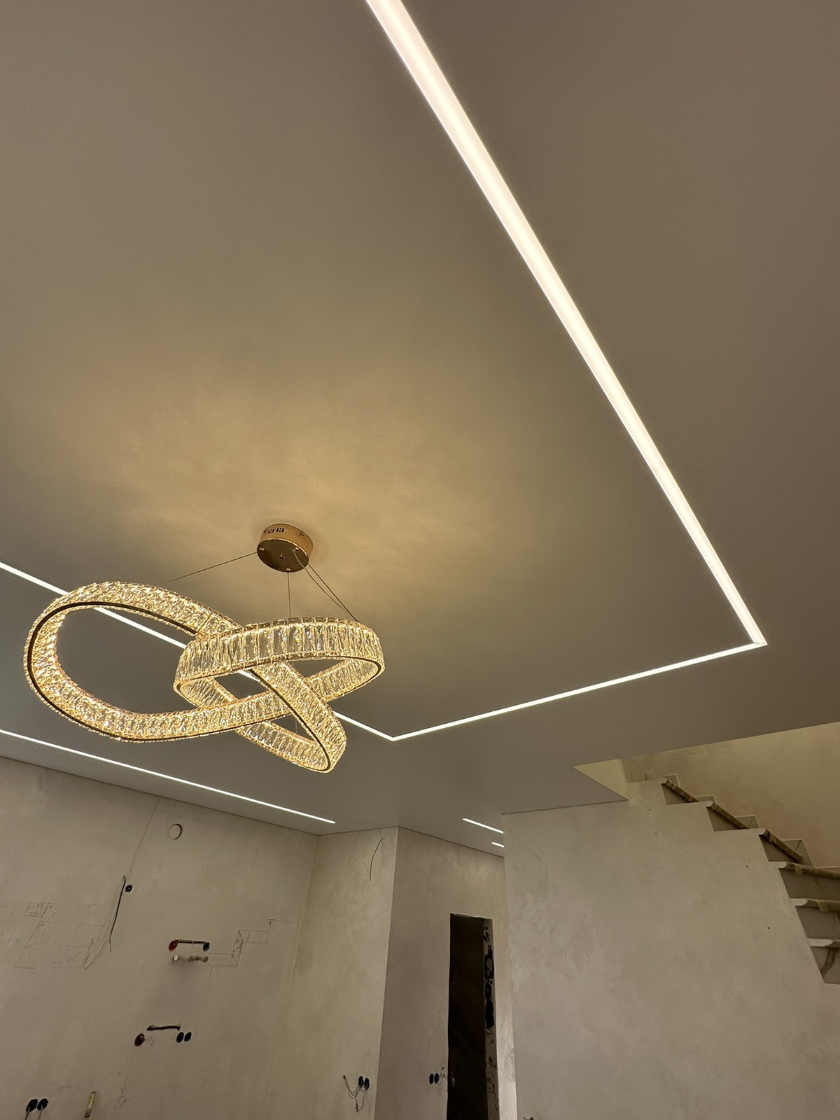 - Можливість прихованого освітлення: натяжні стелі дозволяють встановлювати вбудовані світильники або світлодіодні стрічки, які не лише підкреслюють стиль приміщення, але й забезпечують рівномірне та м'яке освітлення.