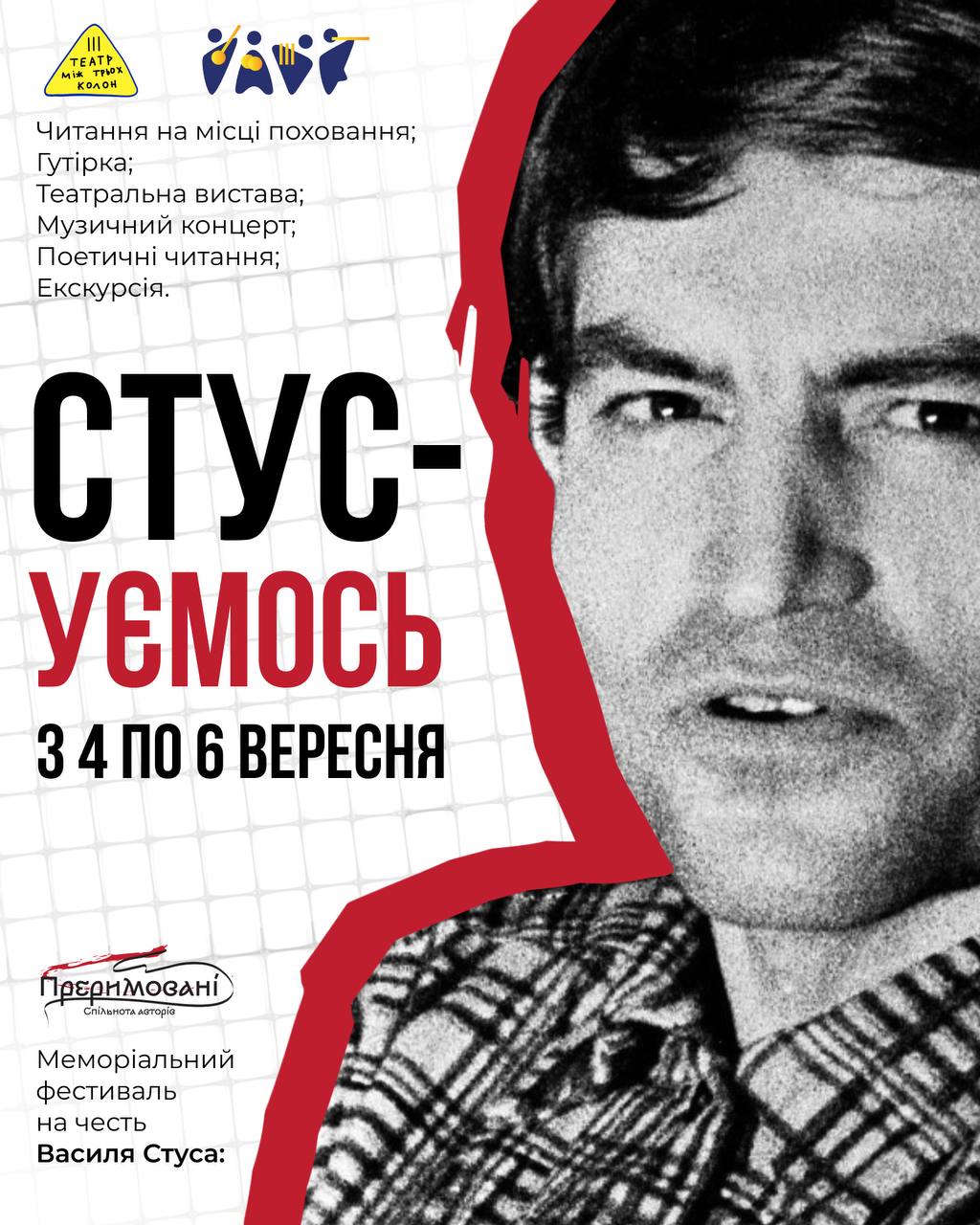 З 4 по 6 вересня у Києві відбудеться меморіальний фестиваль «СТУСуємось», присвячений постаті поета-шістдесятника, правозахисника, Василя Стуса. Програма охоплює літературні читання, мистецькі дискусії, театральні події, екскурсію та музичні виступи.