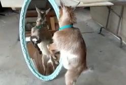 Козленок впервые увидел себя в отражении зеркала и удивил своей реакцией (видео)