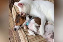 Забавные животныеХозяйка кошки Гизмо и таксы Дейзи, которые любят вместе играть, однажды запечатлела, как питомцы в обнимку спят на кресле, Более того, когда Гизмо засыпала, Дейзи начинала ее будить, чтобы та продолжала ее вылизывать, передает FaceNews.