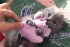 Котенок не захотел расставаться с любимой игрушкой и рассмешил Сеть своей «яростью» (видео)
