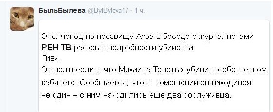 В Twitter появилась информация, что кроме Гиви в его кабинете при взрыве могли быть еще двое людей.