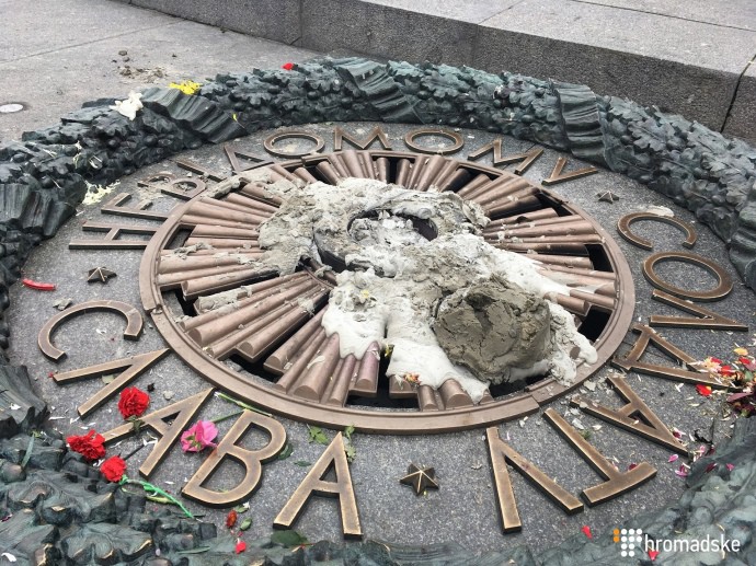 В Киеве в парке Славы уже второй раз за месяц залили цементом Вечный огонь:
