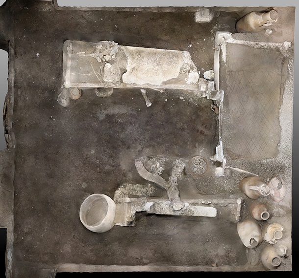 Кроме того, в комнате нашли древко колесницы. Ученые полагают, что в ней жила семья рабов, которые выполняли повседневную работу на вилле, включая подготовку и обслуживание колесницы.